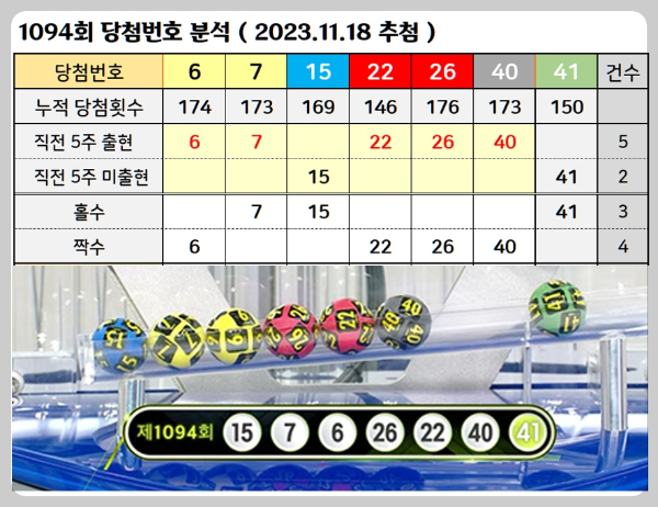 1094회 로또 당첨번호를 분석하면서 이번주 로또 1095회 당첨 예상번호를 찾을 단서를 발견했습니다.