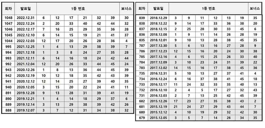 역대 로또 당첨번호 분석하여 이번 달 로또 1등 예상번호를 찾는데, 12월 로또 당첨번호를 중점적으로 파악했습니다.