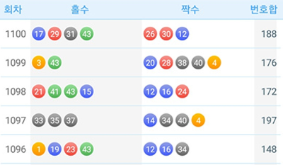 이번 추첨에서는 홀수 번호가 짝수 번호보다 많았습니다. 이러한 비율은 다음 회차 번호 선정에 중요한 기준이 될 수 있습니다. 1101회차는 짝수가 많아지겠죠.