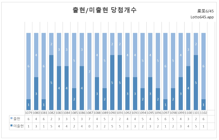 1102회차에서 5주간 번호가 6개 나왔다는 것을 확인할 수 있습니다.