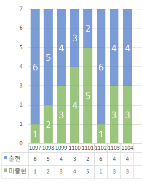 선명하게 1105회 로또 번호 예측번호가 어느 기간에서 많이 나올지 예상할 수 있습니다.