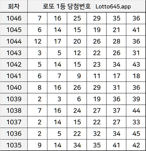 로또 1047회 당첨 예상 번호 분석에 최근 12주(1035회 ~ 1046회) 당첨된 로또 1등 번호에서 많이 출현한 로또번호를 분석하여 1047회 로또 당첨 번호를 예측합니다.