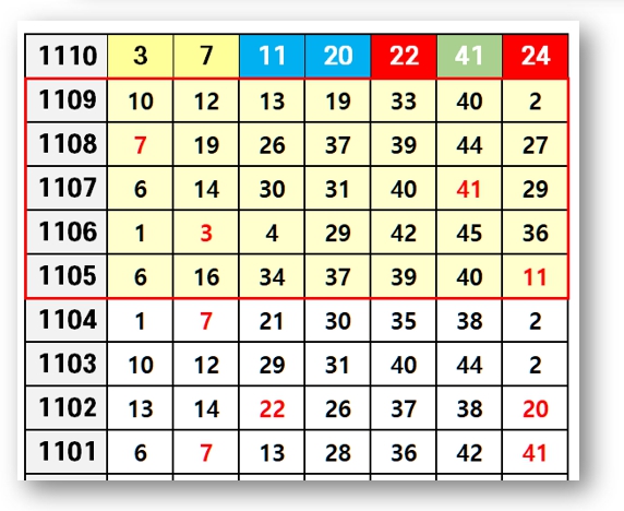 3, 7, 11, 41 숫자가 5주 출현번호에서 당첨되었는데, 역시 최근 5주간 당첨번호는 재당첨율이 높습니다.