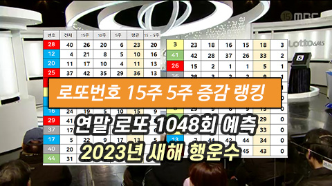 2022년 12월 31일 1048회 로또 당첨번호에 나올 예측 가능한 숫자를 15주 ~ 5주 당첨 랭킹으로 1048회 고정수를 선택할 수 있습니다.