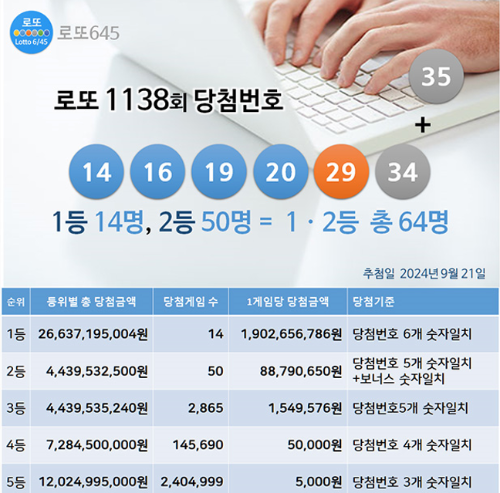 1138회 로또 추첨은 2024년 9월 21일에 진행되었어요. 1등 당첨번호는 14, 16, 19, 20, 29, 34였고, 보너스 번호는 35였죠. 이번 추첨 결과에서 특별히 주목할 만한 점은 당첨번호 6개 중 5개(14, 19, 20, 29, 34)가 직전 5주간의 당첨번호에서 이미 출현했다는 거예요. 이런 높은 일치율은 앞으로의 번호 예측에 중요한 힌트가 될 수 있겠죠.