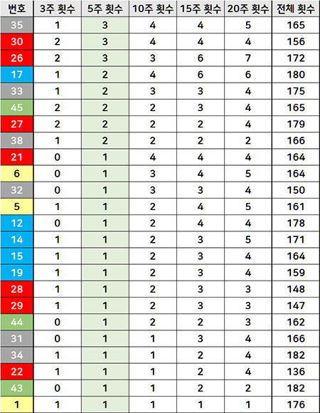 1055회 로또당첨 예상번호 분석하는데 최근 5주간 당첨번호를 분석하면 좋을거 같습니다.